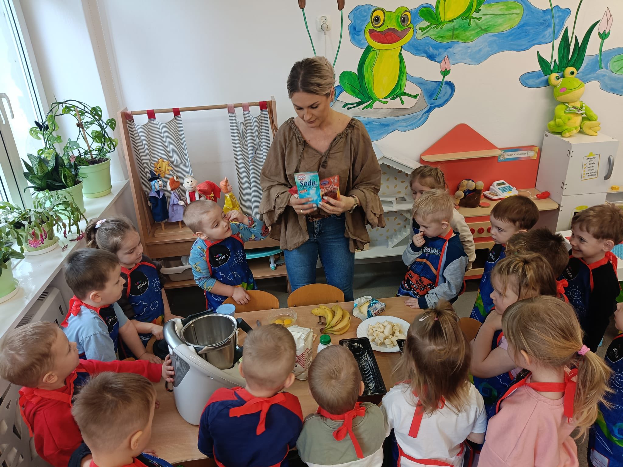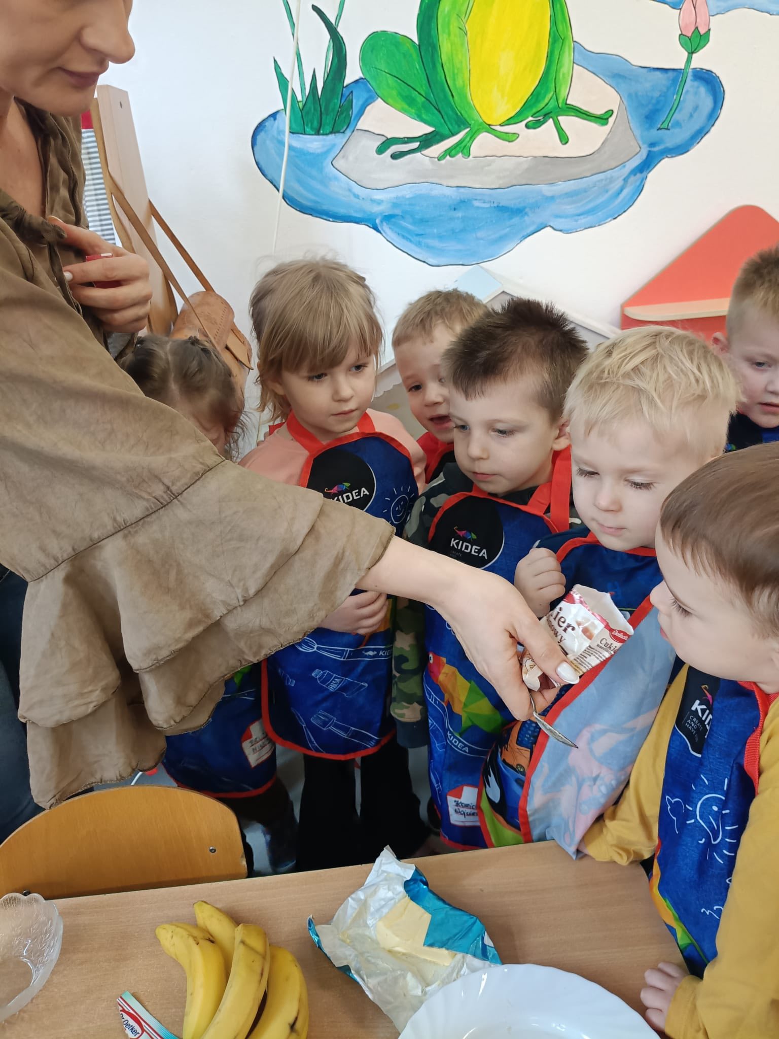 Chlebek bananowy małych kucharzy Żabki bawiły się w „Małych kucharzy” i wykonały dziś chlebek bananowy