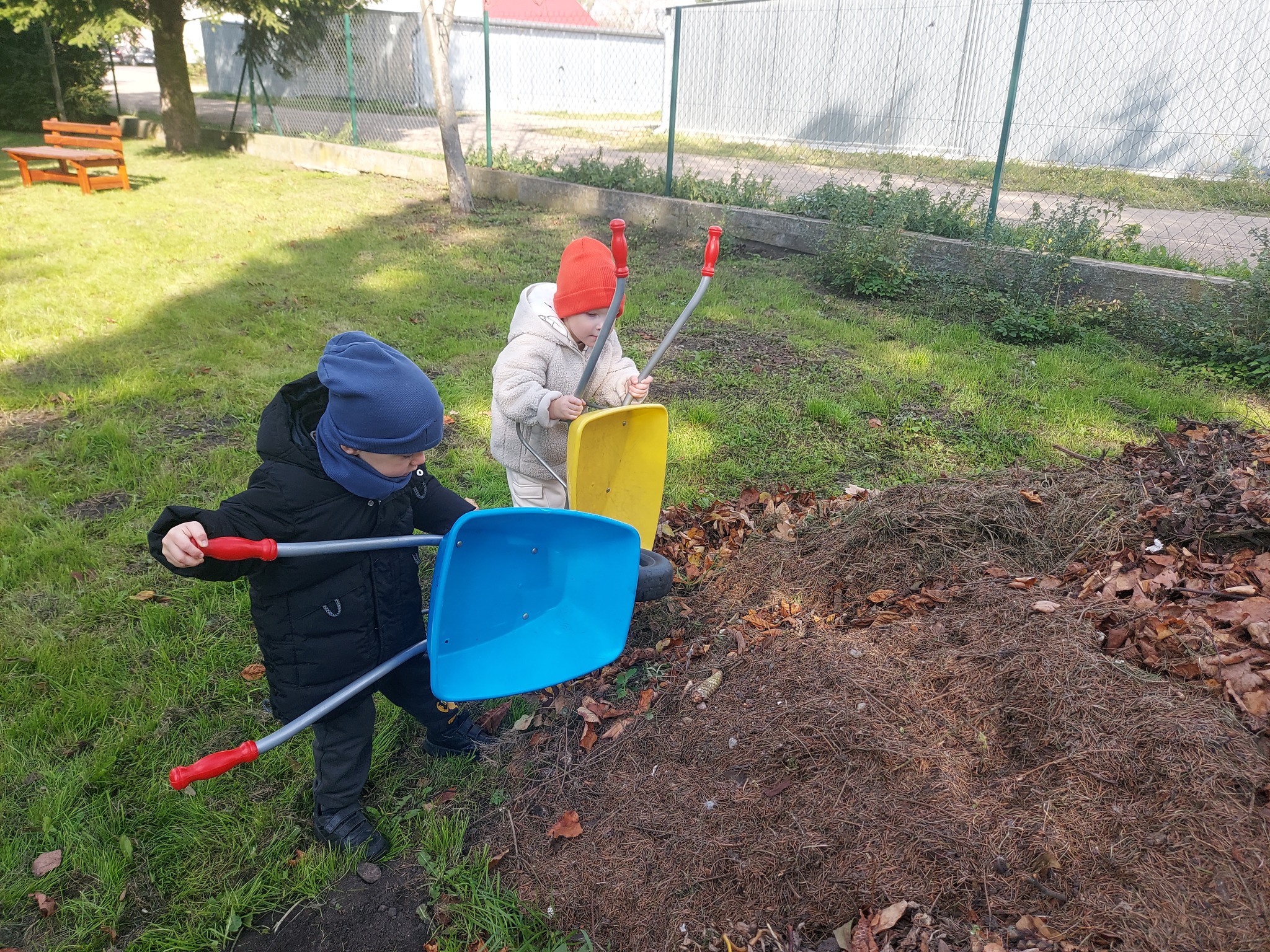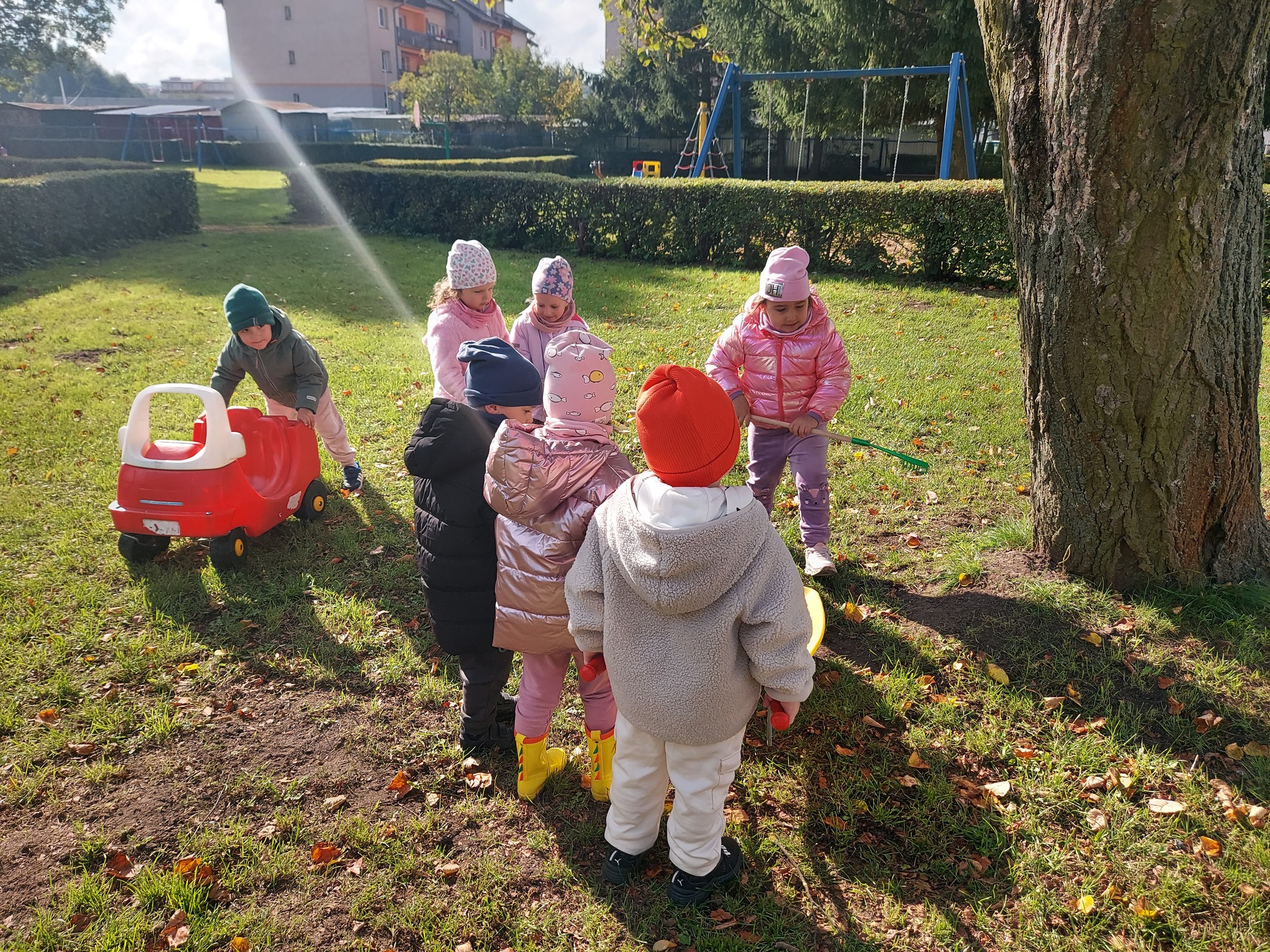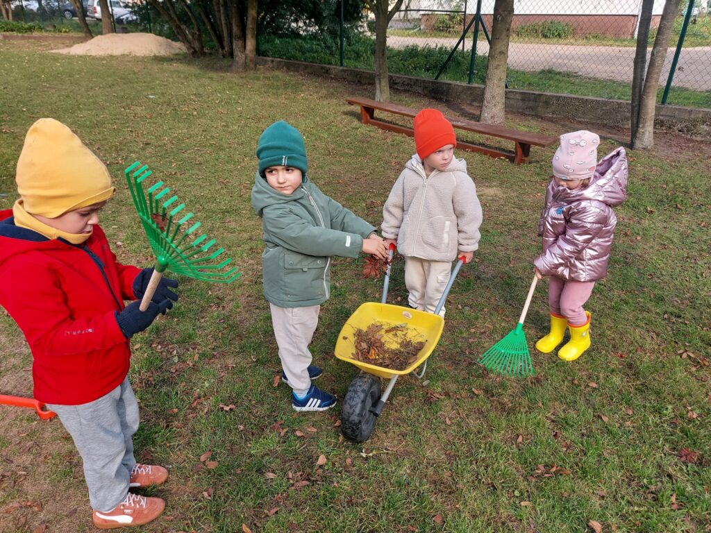 Pszczółki poszukują jesieni w parku i robią jesienne porządki