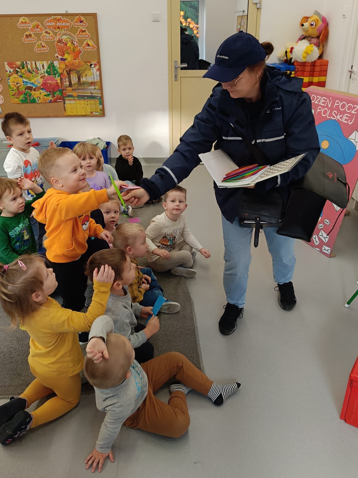 18 października obchodziliśmy Dzień Poczty Polskiej i Listonosza. Aby pogłębić informacje na temat zawodu listonosza, do przedszkola grupa żabki