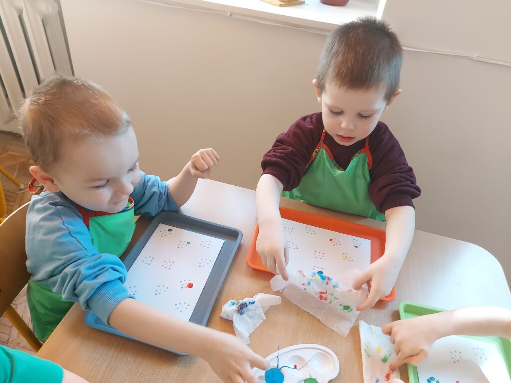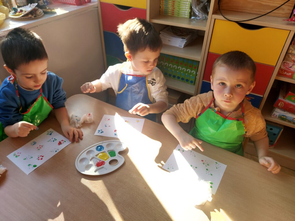 Paluszkowe zabawy plastyczne Pszczółek i wizyta w sklepie ogrodniczym