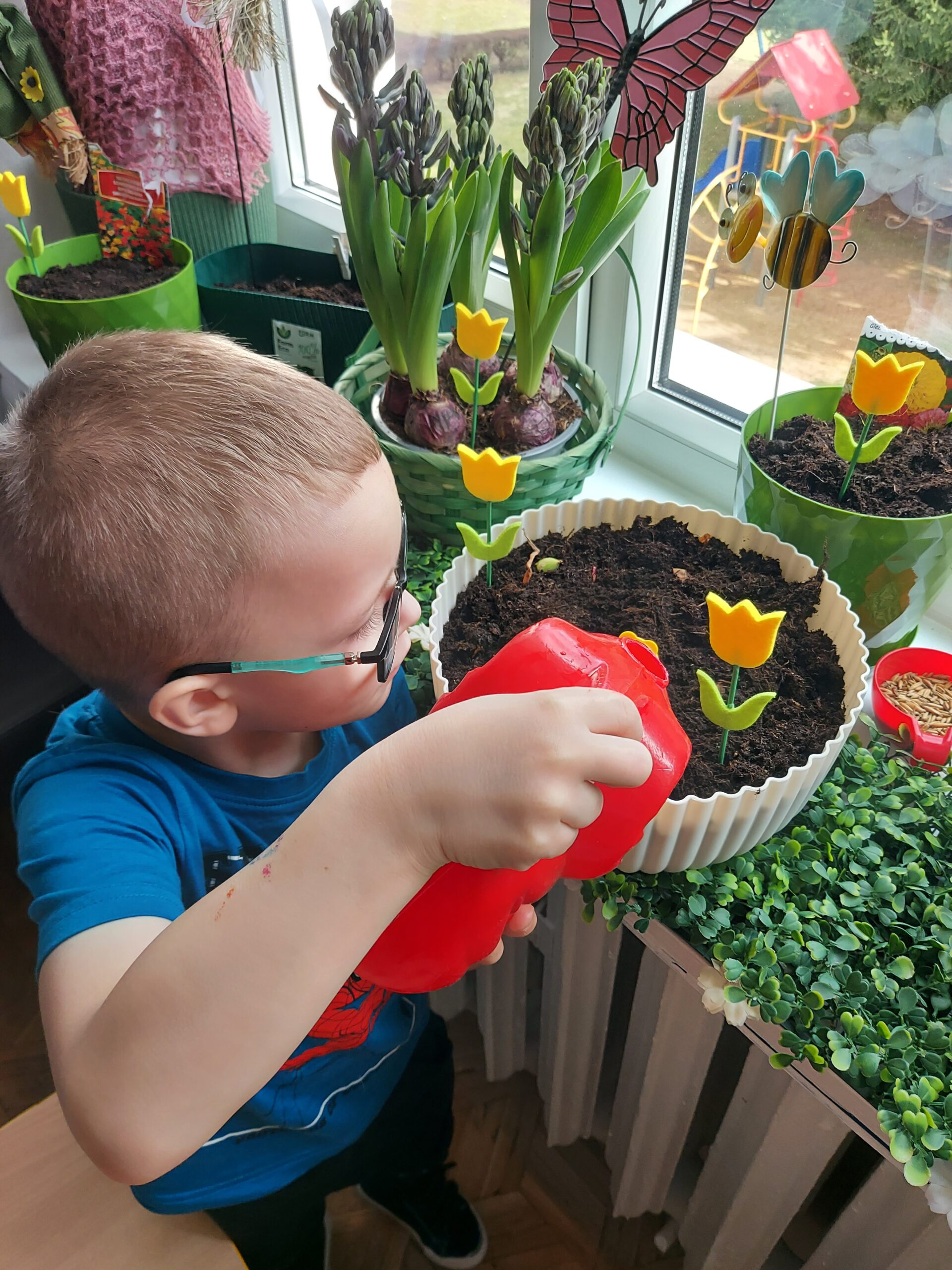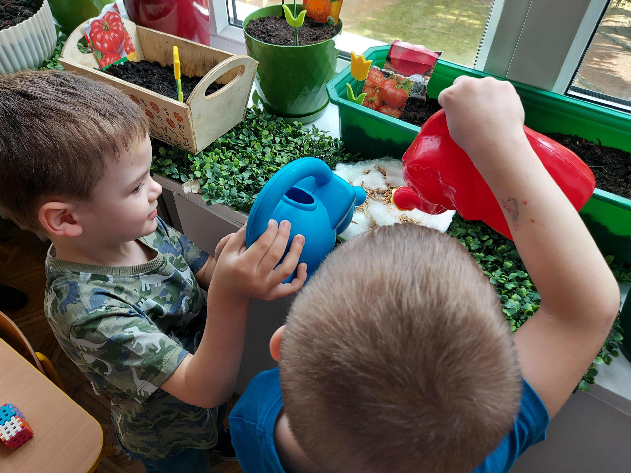 Pszczółki🐝 przygotowały w sali swój wiosenny, zielony kącik.🌷🌿🪴🪻